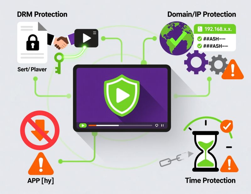 Boomstream offers several options of video protection. The protection is set up for the project and, therefore, applies to all the media files of the project.