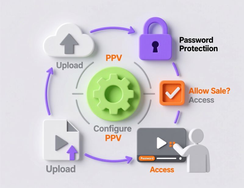 You can create subscription for any uploaded video or live broadcasting and sell it on the moment on your site, blog or social network page.